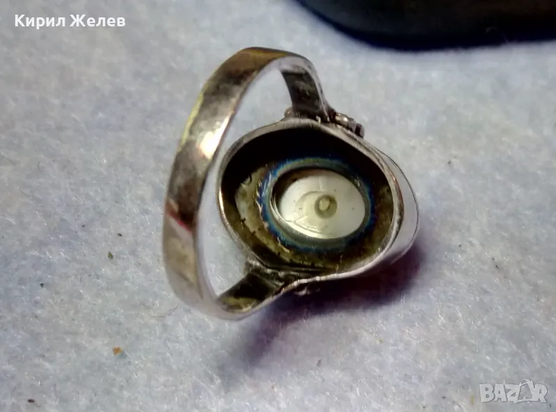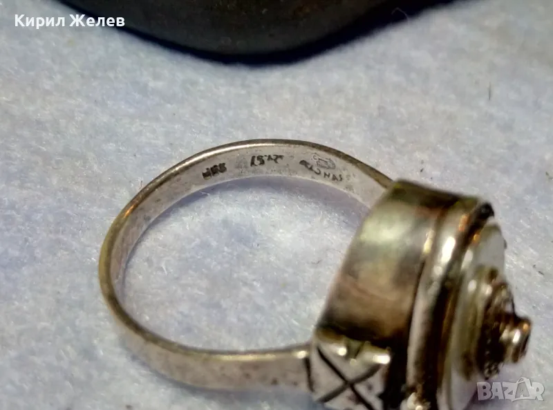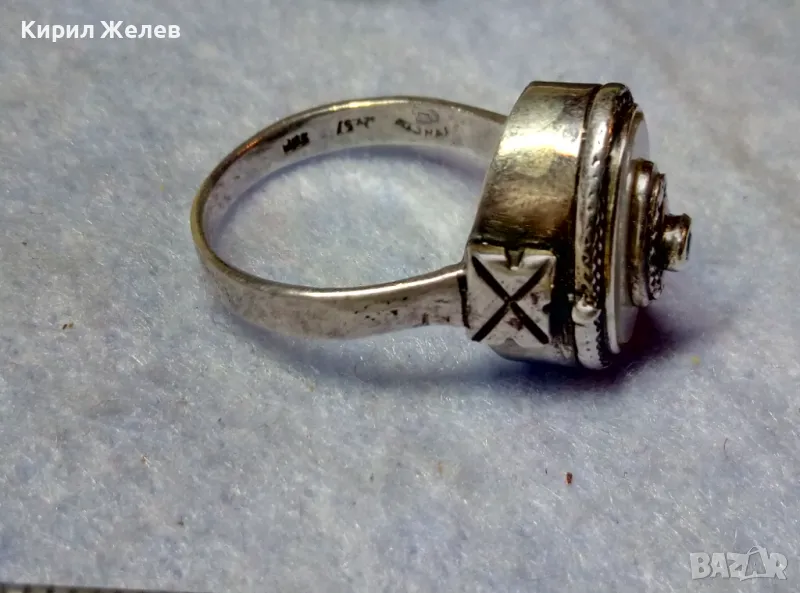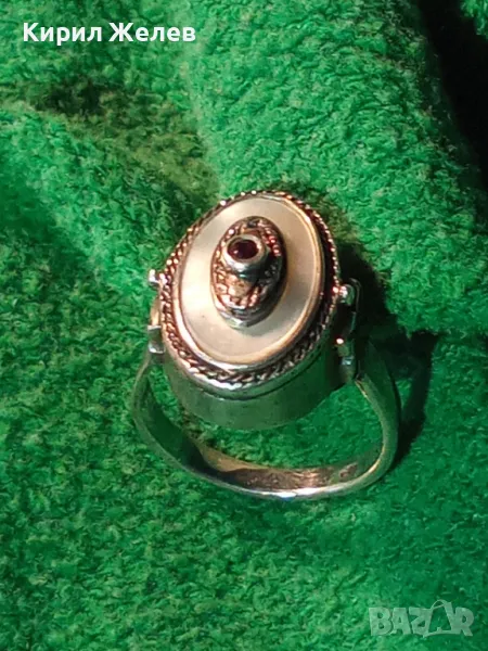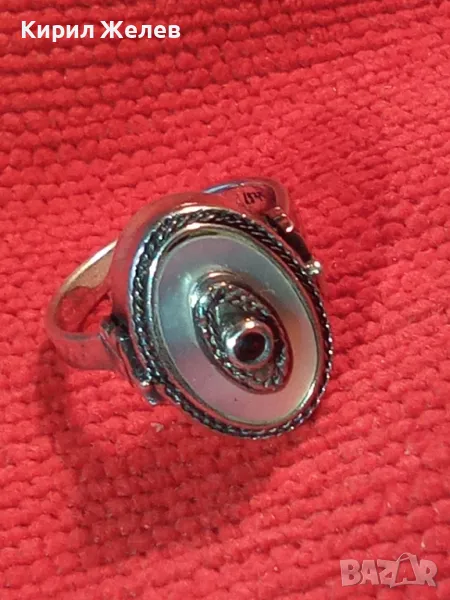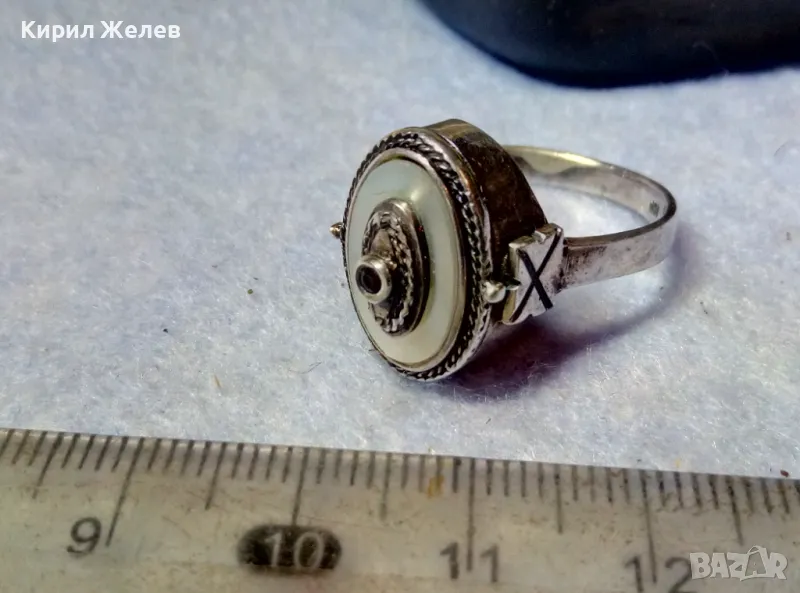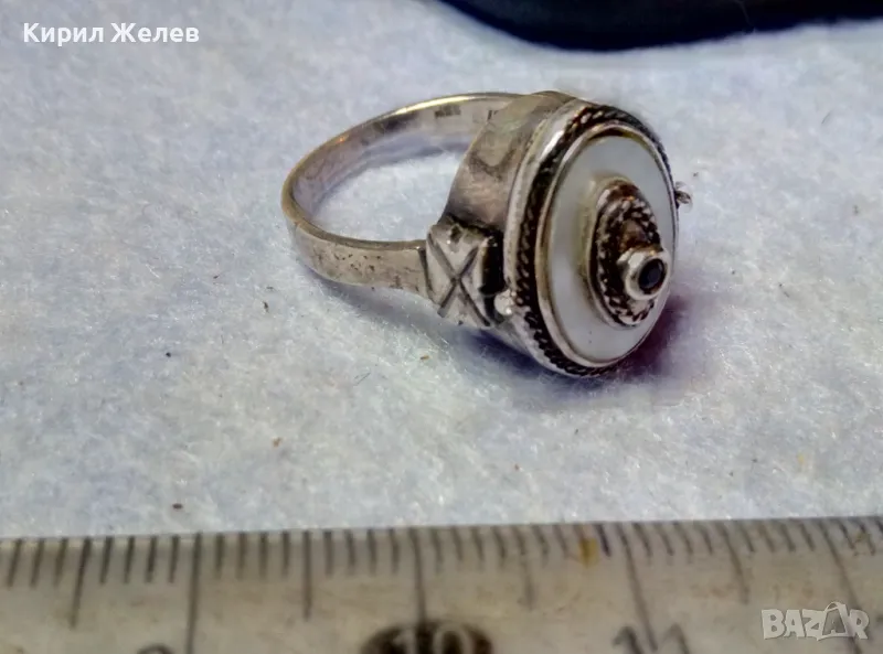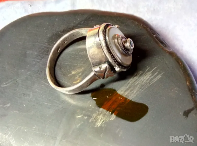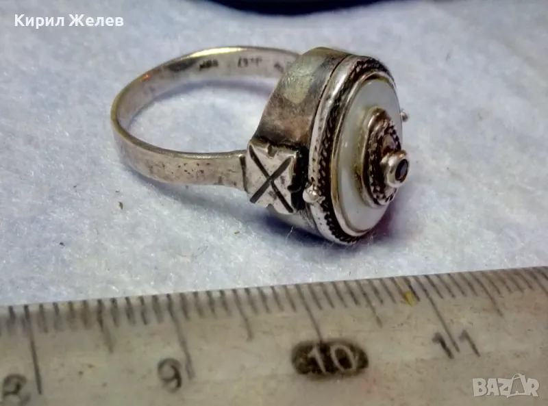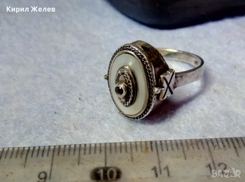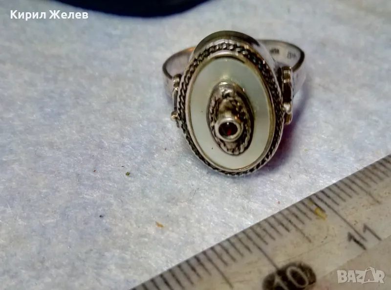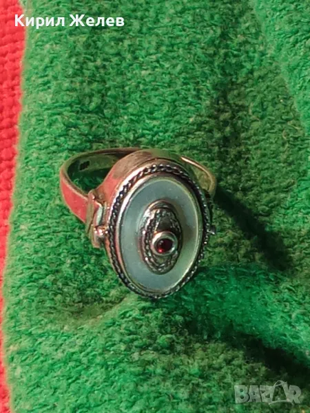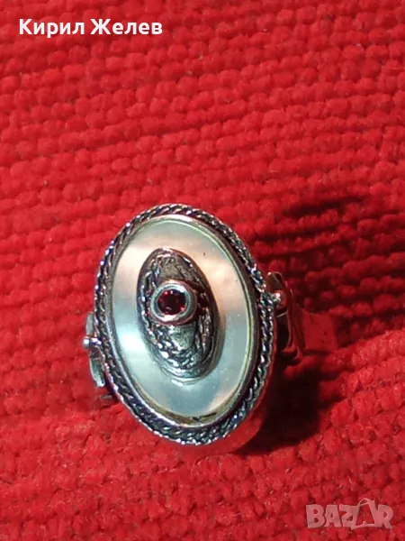 Старинен СЕДЕФЕН СРЕБЪРЕН ПРЪСТЕН СРЕБРО ВИСОКА ПРОБА с 3 ПЕЧАТА и МИНИАТЮРЕН НАТУРАЛЕН РУБИН 49991