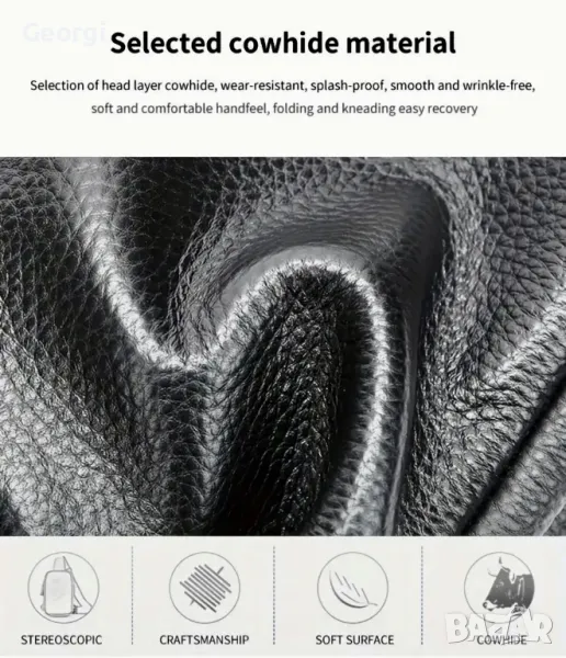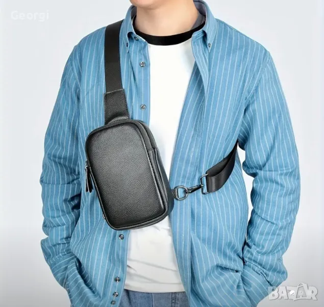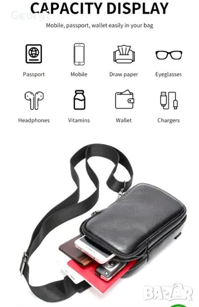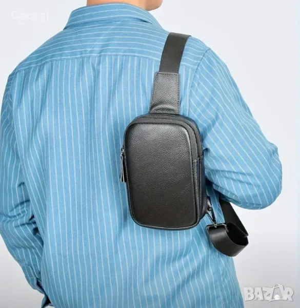 Компактна и Удобна лятна дисплей чантичка /Черна естествена кожа!