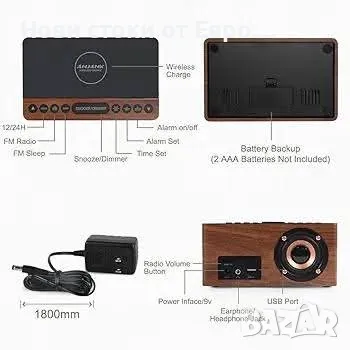 ANJANK FM радио Цифров LED будилник, Станция за бързо безжично зареждане за iPhone/Samsung Galaxy, 5 нива на затъмняване, USB порт за зареждане, 2 тона, Таймер за заспиване за спалня, нощно шкафче, бюро - дървоБудилник с бързо безжично зареждане】Уникален дизайн на горната част за зареждане против приплъзване! Будилникът ANJANK поддържа 5W/7,5W/10W адаптивно зареждане, което може да зарежда вашия смартфон бързо и лесно. Освен това включва USB порт за зареждане на други електронни устройства, като втори телефон, резервна батерия или смарт часовник. Опростете нощната си рутина, премахвайки нуждата от тромави кабели за зареждане. 【Fm радио и таймер за заспиване】Дървен радиочасовник ANJANK с честотен диапазон 87,5-108MHz. Позволява ви лесно да настройвате и запазвате любимите си канали. С първокласен високоговорител с регулируема сила на звука можете да се насладите на ясен и чист звук. Функция таймер за заспиване (10-120 минути) по ваш избор. 【Два режима на събуждане】 Събудете се с класически зумер или любимата си радиостанция, започнете деня си свеж с добро настроение! Когато алармата е активирана, просто натиснете бутона SNOOZE и се насладете на още 9 минути сън. 【Голям цифров LED дисплей с възможност за димиране】Цифрите на числата от 1,2 метра са не само ярки и лесни за виждане, но също така се предлагат с фантастичен режим на затъмняване. Тази функция за затъмняване може да ви осигури добър нощен сън без прекъсване. Възможността на часовника да регулира яркостта си го прави универсален и подходящ за различни предпочитания и нужди от осветление за вас. 【Стилен дървен дизайн за декорация】Ще харесате естетиката на този часовник. Той е елегантен, изчистен, модерен и изглежда като красива дървена мебел. Неговата функционалност и стилен външен вид го правят перфектен подарък за семейството, близки или приятели. 【Лесен за използване и отговорност】 С оптимизирания функционален дизайн този будилник може да бъде много лесен за използване.