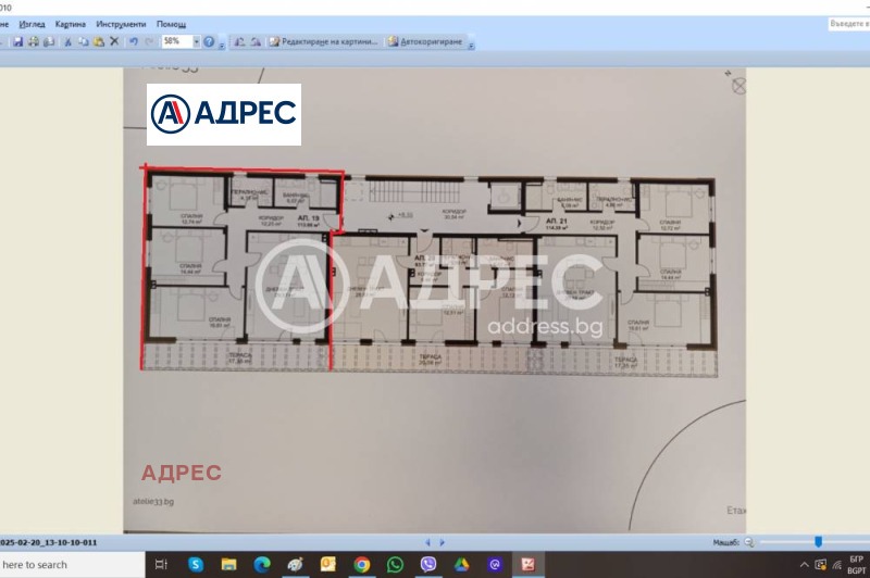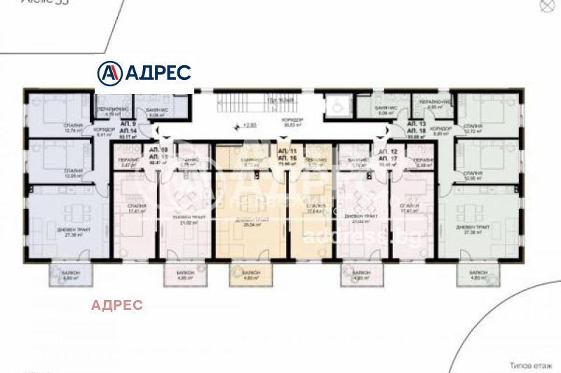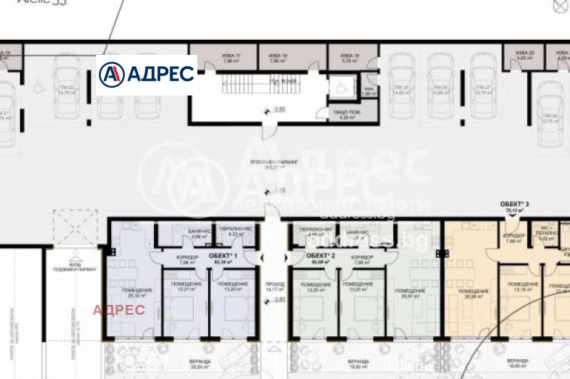 за апартамент 19 са включени идеални 63м2 от общите части на земята.