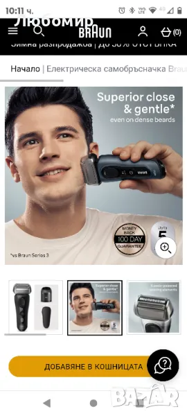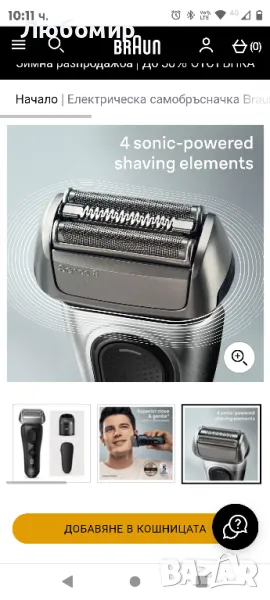 Електрическа самобръсначка Braun Series 8, SmartCare Center, електрическа самобръсначка за мокро и сухо, 8560cc, черна.Подобрете бръсненето си с подобрената електрическа самобръсначка Series 8 на Braun. Тази водоустойчива самобръсначка с фолио осигурява гладко и нежно бръснене дори на най-гъстите бради. Получете мощно бръснене на брада с всякаква гъстота с 4 задвижвани със звук бръснещи елемента. ProTrimmer идеално подстригва дори трудни коси - бакенбарди, мустаци и под носа. Самобръсначката има въртяща се на 40° глава, която се адаптира към всеки контур на лицето, осигурявайки плътност и комфорт на кожата дори в трудни зони. 100% Произведено в Германия. 100% водоустойчив. Захранва се от 60-минутна литиево-йонна батерия. За мокра или суха употреба. С центъра 5in1 SmartCare за самобръсначка като нова всеки ден.