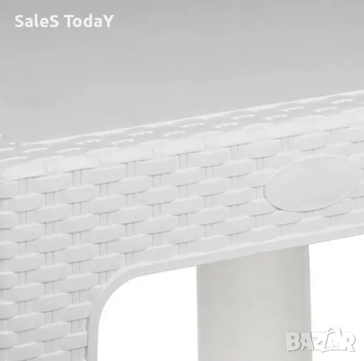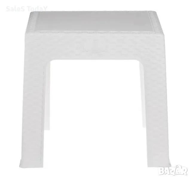 Помощна маса пластмасова, с плетен ратан в бял цвят. Има квадратен гладък плот 43x43см. Със своя модерен дизайн той ще намери своето място на вашия балкон или двор, но и вътре в къщата.
