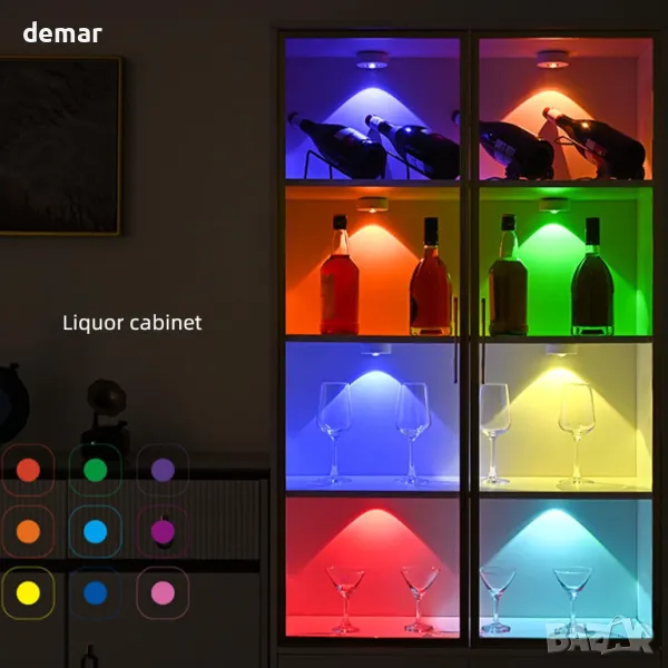 Кухненски лампи под шкаф Ruspela Акумулаторни, 6 броя, RGB, дистанционно