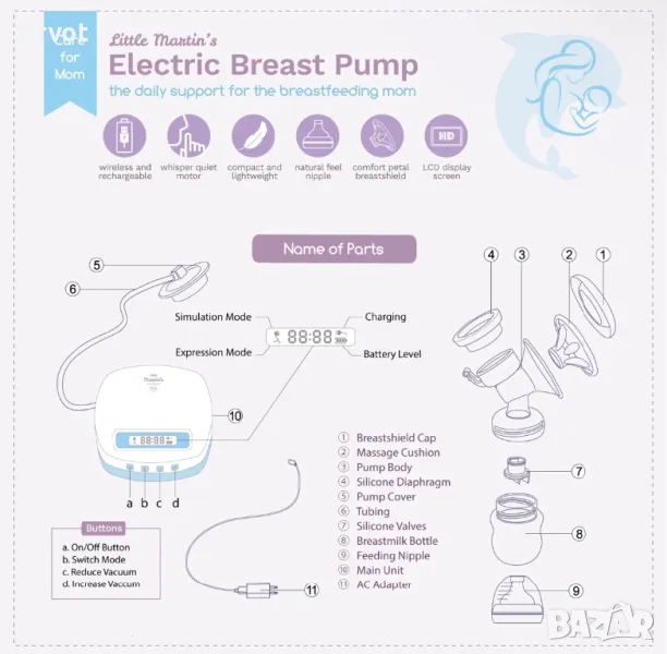 Електрическа помпа за кърма Little Martin’s за кърмене – акумулаторна батерия за пътуване → Обява 49298184
