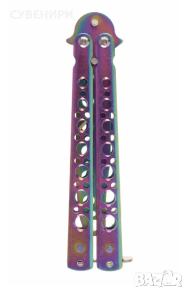 Джобен сгъваем нож с дупки - тип пеперуда в хамелеонов цвят.