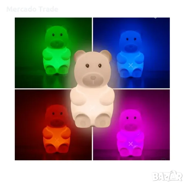 Декоративна детска нощна лампа Mercado Trade на батерии във формата на меко бяло мече, с цветно осветление.