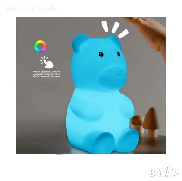 Декоративна детска нощна лампа Mercado Trade, Мече, LED, Батерии