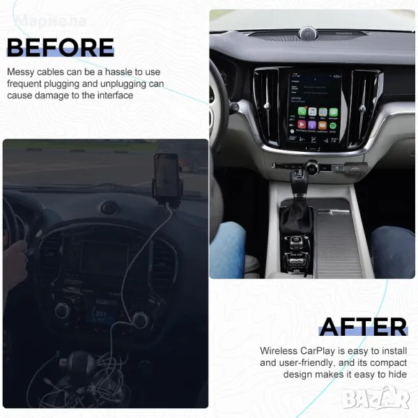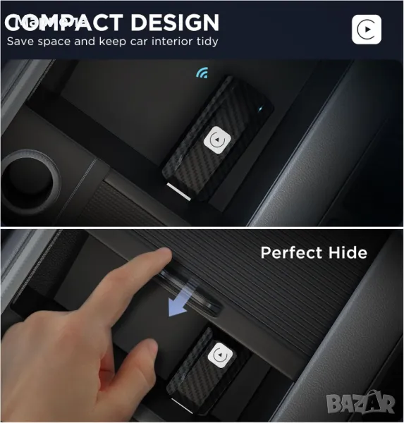 Компактен и удобен: безжичният адаптер Carplay е малък и стилен и заема минимално място в колата ви. Насладете се на чист, безжичен звук без компромис с производителността или удобството. Дори ако влезете в колата и я запалите по време на разговор, Carplay автоматично се свързва с колата, без да се налага да затваряте и да чакате връзката.