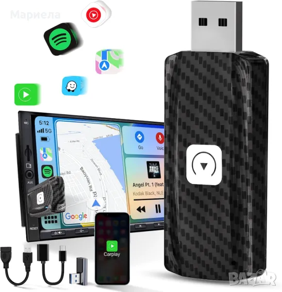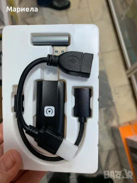 Устройството е закупено от разпродажба в Германия и е НОВО!Бърза и стабилна връзка: кажете сбогом на буферите, закъсненията и отмените. Безжичният адаптер за carplay е оборудван с 5G чип, 5.8/2.4GHz WiFi и поддръжка на BT5.2, осигурявайки светкавично бърза и стабилна свързаност. Дори ако вашият iPhone е в джоба ви, той може лесно да бъде разпознат, така че можете да се наслаждавате на Spotify, подкасти, новини и GPS навигация на живо по всяко време.