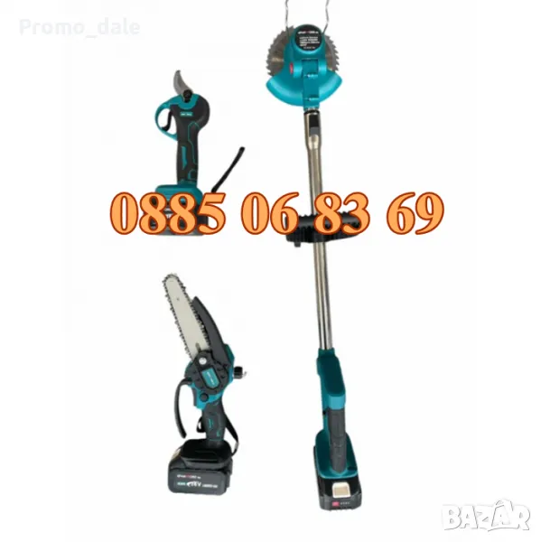 Комплект 3 в 1 акумулаторна лозарска ножица, мини верижен трион и акумулаторен тример 36V 8Ah