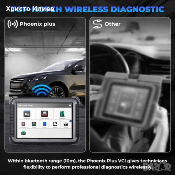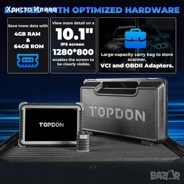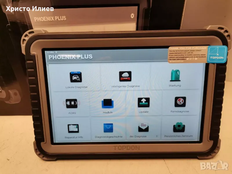 Продукт: Скенерът Phoenix от Topdon е висококачествен диагностичен инструмент с кодиране на контролния блок. Базиран е на Android 10.0 и се предлага с 25,7 см (10,1") сензорен екран, 64 GB ROM и дълъг живот на батерията от над 10 часа. Включва безплатни софтуерни актуализации с едно докосване чрез Wi-Fi за 2 години.