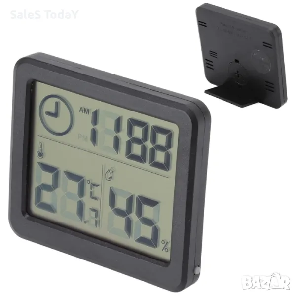 Практичен и елегантен, този часовник с термометър и хигрометър е не само функционален, но и добавя модерен акцент към всяка стая!