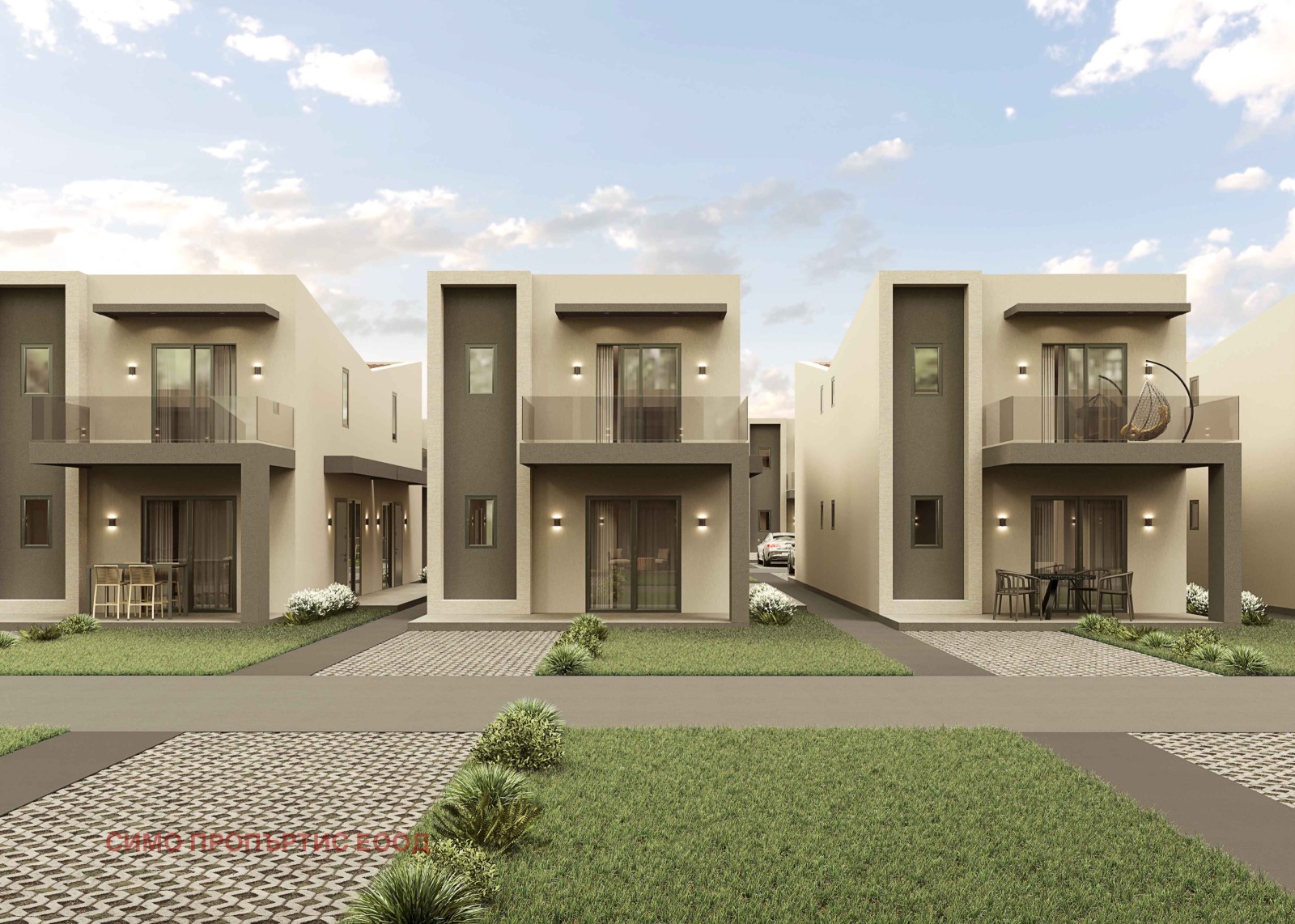 Всека къще се състои от два етажа с резапределение на помещенията: хол с кухненски бокс, три бр. спални, 2 бр. бани с тоалетни и просторни веранди и собствен малък двор. Чистата светла квадратур на апартамена е 75 кв.м БЕЗ ВКЛЮЧЕНИ СТЕНИ И ОБЩИ ЧАСТИ.