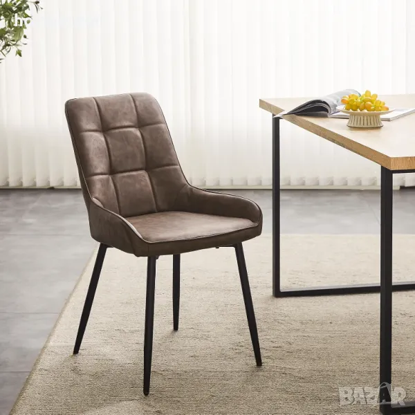 Този трапезен стол е изработен с дамаска от висококачествена изкуствена кожа, която е плътна, мека на допир, водоустойчива и лесна за почистване.