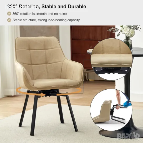 Въртящият се тапициран стол е подходящ за кухни, спални, трапезарии, всекидневни и кабинети.