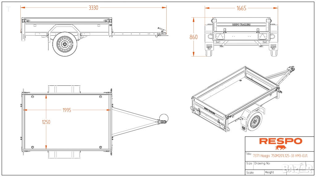 НОВО Туристическо ремарке RESPO 750M201L125 → Обява 49300656