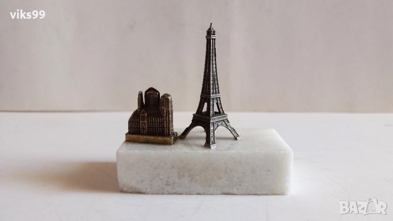 Метален сувенир с истинска мраморна основа Айфеловата кула и Нотр Дам - Париж. Eiffel Tower Notre Dame Paris Marble Marbre Veritable. - 10 EURO