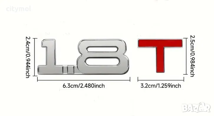 Универсална атрактивна метална емблема с надпис 1.8 Т. Можете да поставите емблемата навсякъде по автомобила: багажника, калника, предния капак, вратите и други части. В задния край има здрава двойнозалепваща лента, която я придържа здраво към повърхността. Емблемата е със слънцезащитен и водоустойчив слой.