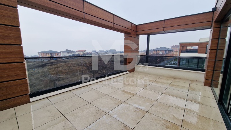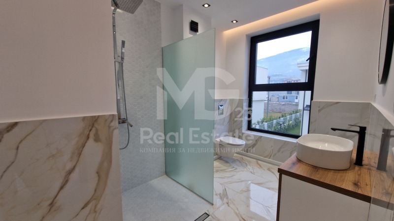Представяме двуетажна къща разположена в полите на Родопите. Имота се намира в затворен комплекс с контролиран достъп, 10 къщи всяка със собствен двор и две паркоместа. Площта на къщата е 430 кв.м., съответно разпределени на три нива: Първи етаж с площ 137 кв.м. - предверие, просторен хол с трапезария и кухненски кът с излаз към дворна веранда, спалня и баня с тоалетна. Втори етаж с площ 148 кв.м.: перално помещение, баня с тоалетна, три спални, от които родителската е с излаз на просторна тераса, гардеробно и собствена баня с тоалетна. Подземно ниво 145 кв.м.: три помещения, от които две големи предвидени за склад или фитнес кът и машинно помещение с термопомпа. Къщата е изградена термопомпа, канализация и др. Имота е с просторни стаи, с височина на таваните 3,40 кв.м. и предлага красива гледка към Родпите и град Пловдив.