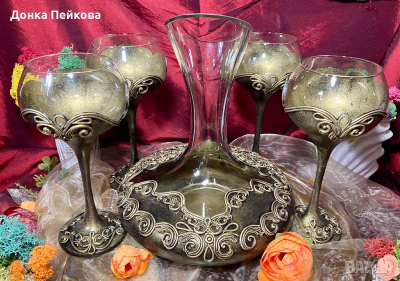 Ръчно изработен сервиз за вино от 5 части → Обява 49301517