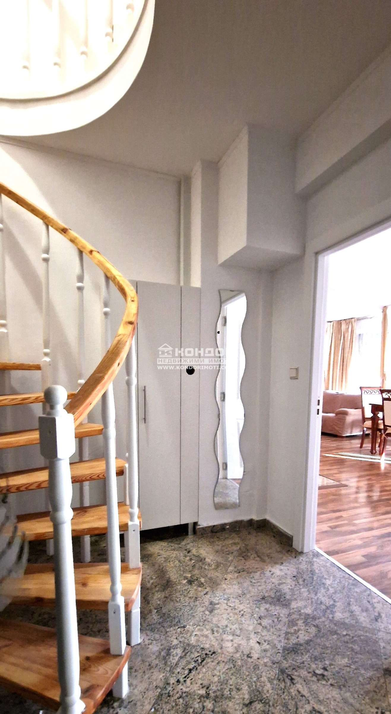 Оферта 66433: Предлагаме ви напълно завършен и обзаведен многостаен апартамент с три спални - Тип Мезонет , разположен на първи и втори жилищни етажи в сграда, намираща се в един от най-предпочитаните райони на квартала с лесен и удобен достъп към централната част на града. Жилището е с просторни и светли стаи, с открита и панорамна гледка и функционално разпределение !!! Апартаментът се състои от три самостоятелни и непреходни спални, просторна югоизточна дневна с трапезария и самостоятелна кухня, антре , баня с тоалетна, втори санитарен възел и две тераси. Жилището е в отлично състояние и се продава напълно обзаведено с оборудвани санитарни помещения, вградена камина с направена инсталация и монтирани радиатори , вградено кухненско обзавеждане , инверторни климатици. Възможност за Закупуване чрез Банков Кредит !!!ВИЖТЕ ОЩЕ ИЗГОДНИ ОФЕРТИ НА https://www.kondorimoti.com/ С ЕЖЕДНЕВНА АКТУАЛИЗАЦИЯ!