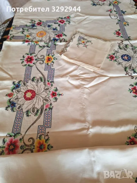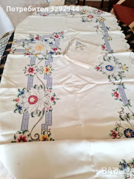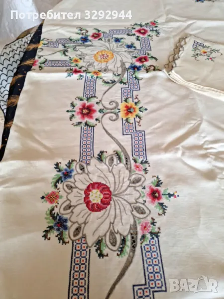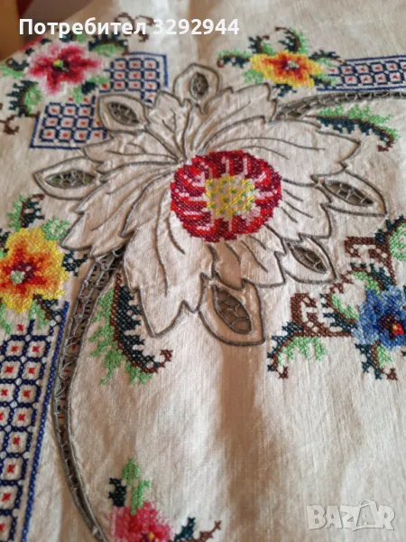 Ленена ръчно бродирана покривка. → Обява 49301626