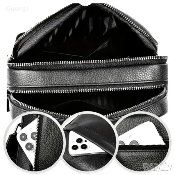 Динамично/Елегантна и модерна мъжка мини бизнес чанта (офис кежуал) с най-висок клас селектирана телешка кожа 4++!