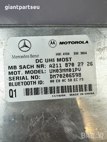 BLUETOOTH Модул за Мерцедес W211, Всяка закупена част има гаранция или замяна 7 дни, "ОБЪРКАНИ! ЧАСТИ! ПРИ! ПОРЪЧКА!" не подлежат на замяна или връщане. Отлично състояние без забележка за повече информация и наличности 0876466151, голям избор на части втора ръка за БМВ! МЕРЦЕДЕС! И АУДИ! както и други марки.