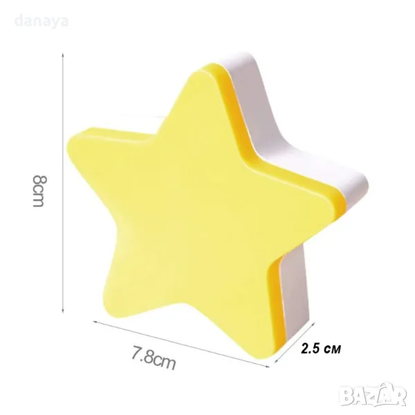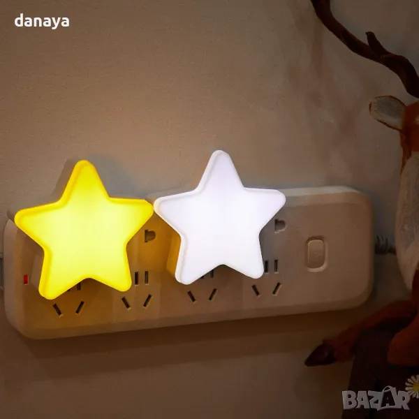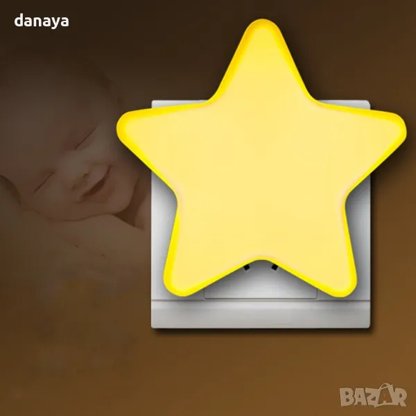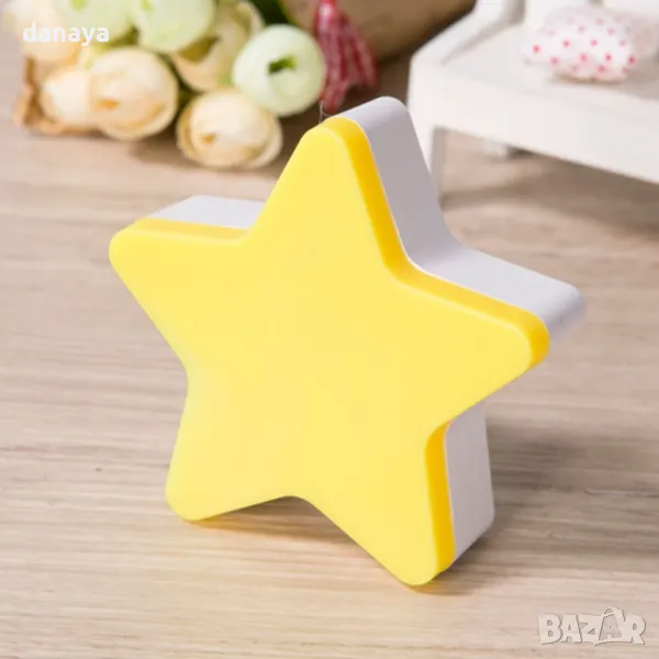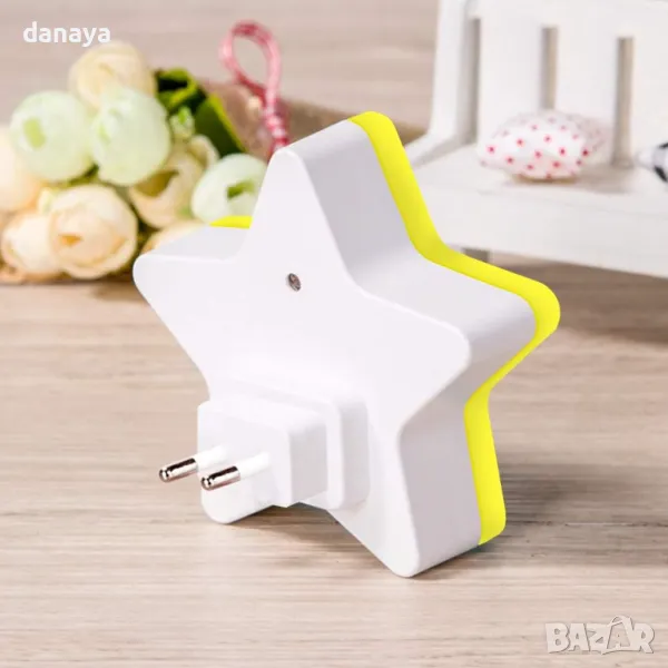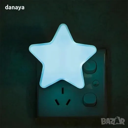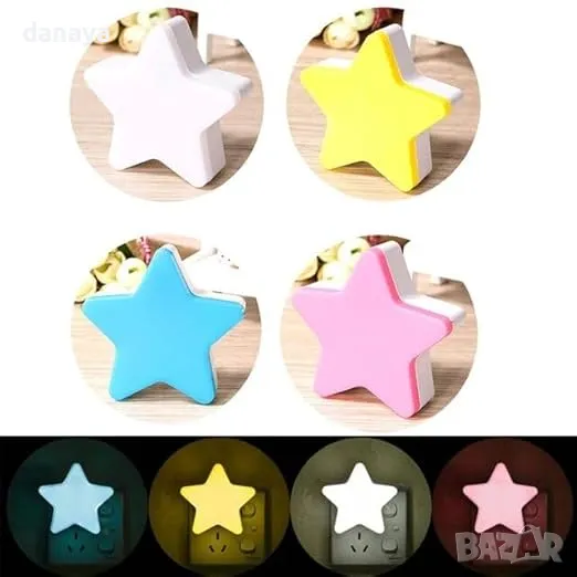 Енергоспестяваща нощна лед лампа за стена с копче за включване и изключване. Лед лампа за контакт с форма на звезда в различни цветове. Симпатична нощна лед лампичка, идеална за всяко детско помещение. Специално разработена, за да пести електроенергия.