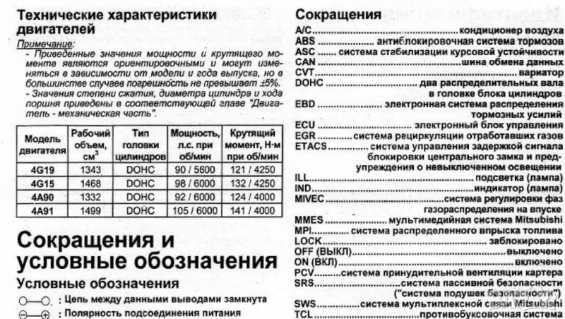 4G19 (1,3 л), 4A90 (1,3 л), 4G15 (1,5 л) и 4A91 (1,5 л)