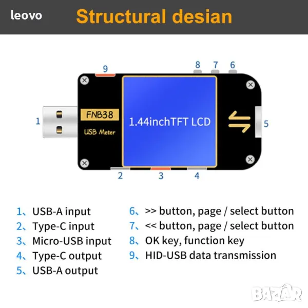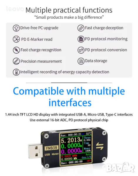 Един от най-добрите USB тестери, с голям цветен дисплей.