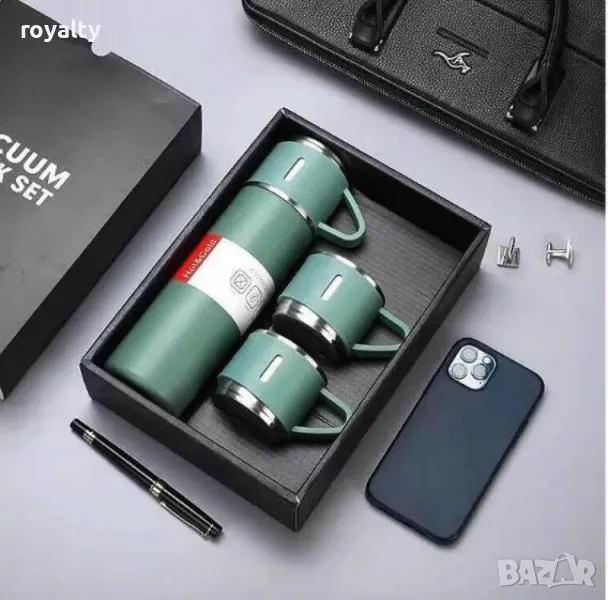 Подаръчният комплект термос с 3 чаши е отличен избор за всеки, който цени удобството и качеството на своите напитки. Със своята дълготрайна изолация и издръжливи материали, този комплект предлага надеждност и стил за всякакви ситуации. Независимо дали търсите практично решение за вашите пътувания или искате да зарадвате близък човек с качествен подарък, този комплект е идеалното решение.
