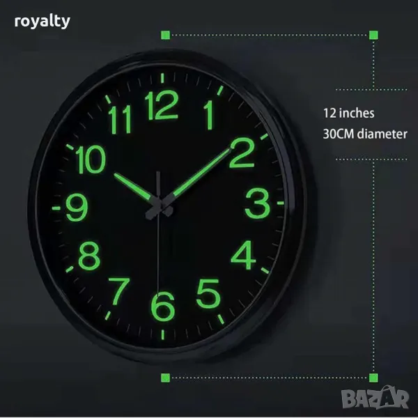 Светещ часовник за стена (Безшумен режим) → Обява 49305365