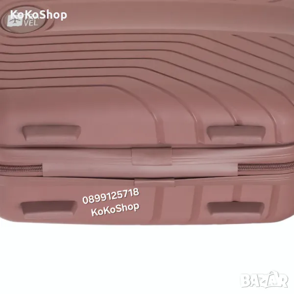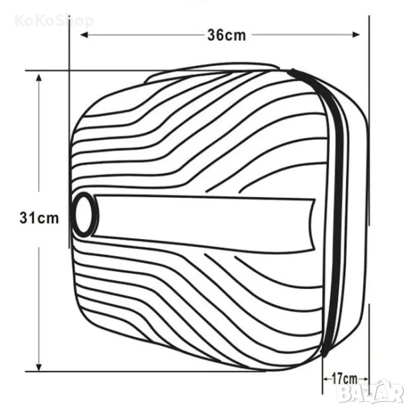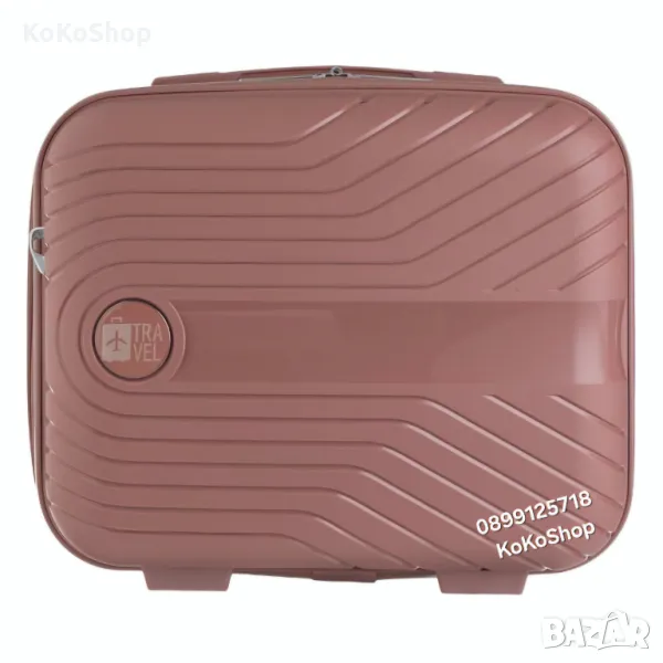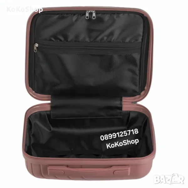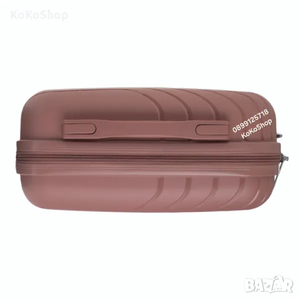 Куфар за ръчен багаж. Куфарът има една дръжка за носене,а на гърба има гумена лента,с която може да се прикрепи към телескопична дръжка на голям куфар.