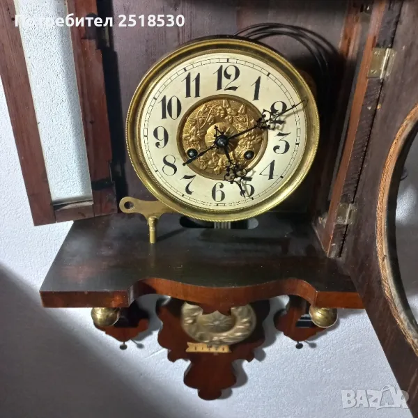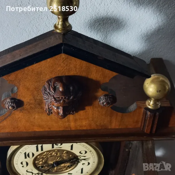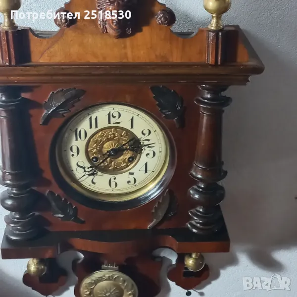 Стар стенен часовник Junghans на повече от 100 години, Виенски тип кутия с открито махало.Работещ механизъм,гонг на половин и цял час запазена дървена част за годините си,размер 90×40 см.Красив циферблат и махало,бронзови топки за украса.Часовника ще бъде старателно опакован и доставен до удобен за Вас адрес.