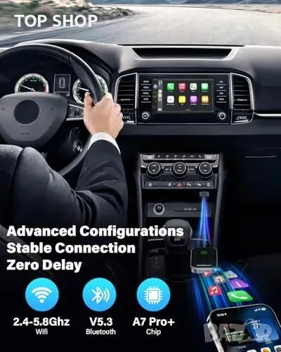 Нов Безжичен CarPlay Донгъл 2024, 5.8GHz, Съвместим с Автомобили от 2015+