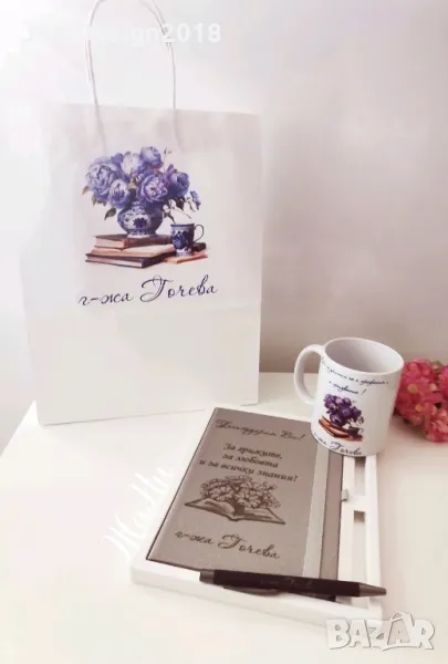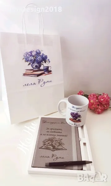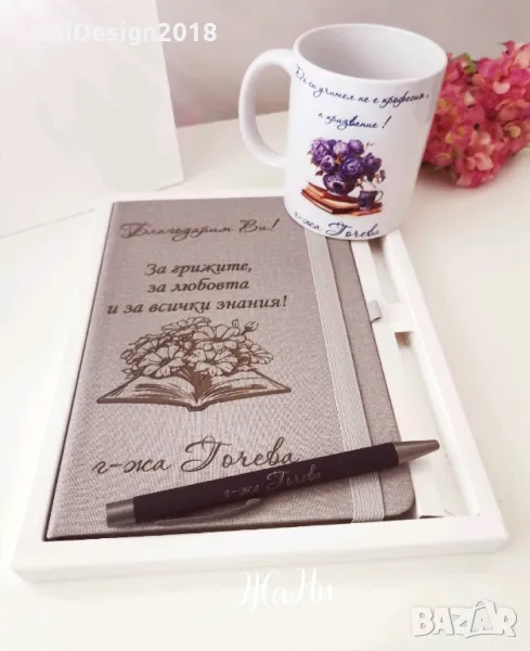 Подаръчен комплект за учител за 8ми Март, празника на буквите, завтршване на учебната. → Обява 49307362