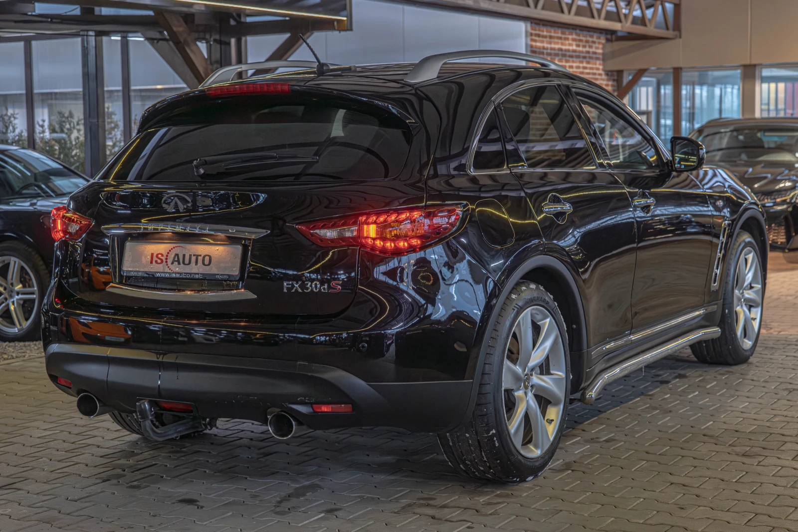 Infinity FX30s Допълнителни функции: Въздушна възглавница от страната на водача/пътника, активни подглавници, активна вентилация на предните седалки, аудио система: радио с CD и MP3 плейър, електрически външни огледала. сгъваеми, външни огледала електрически регулируеми и отопляеми, външни огледала с функция за паркиране/помощ за паркиране на заден ход, външни огледала в цвета на каросерията, биксенонови фарове с динамични светлини за завиване, релси на покрива (алуминий), автоматично включване на светлините, комплект за първа помощ, електронно контролирано окачване на шасито (Continuous Damping Control, CDC), цветен дисплей (7, 0 инча), електрически стъкла отпред + отзад, Bluetooth система за свободни ръце, багажно отделение капак/ролетна щора, задна врата с автоматична система за отваряне и затваряне, LED задни светлини, интериор: дърво, клен, вътрешно огледало с автоматично затъмняване, Isofix система за детско столче, купе: 5 врати, 2-зонен автоматичен климатроник с авт. Контрол на рециркулацията на въздуха, боя със свойства против надраскване (устойчива на надраскване), седалка с лумбална опора, предна лява, електрическа. регулируема, кормилна колона (волан) ел. регулируеми с памет, алуминиеви джанти, задни вентилационни дюзи, актуализация на модела, двигател 3. 0 литра - 175 kW дизелов катализатор, алуминиеви педали, междуосие 2885 мм, система за следене на налягането в гумите, резервно колело като аварийно колело, камера за заден ход, сгъваеми задни седалки, кожена дръжка на скоростния лост, фарове със затъмнени рефлектори, електрически люк (стъкло), страничен airba gs отпред и отзад, ел. седалка предна лява. регулируеми (14 посоки), предна лява седалка и външно огледало с функция памет, предна дясна седалка ел. регулируема (8 посоки), покритие на седалката / тапицерия: кожа, отопляеми предни седалки, сенници с огледало (осветени), спортни седалки отпред, затъмнени задни стъкла, управление на четирите колела (Rear Active Steer RAS / 4WAS) Лизинг! За повече информация 0882111022, info@isauto. net