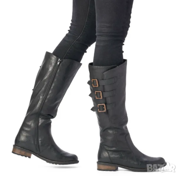 Обувки REMONTE - това е по-висока линия на марката RIEKER, тази обувка се характеризира с отлична комбинация от горни материали. Тази дамска обувка ще бъде правилният избор за тези от вас с по-широк прасец. Горната част е декорирана с каишки с метални катарами и шевове, които създават фини линии върху обувката. Функционален цип осигурява лесно обуване, а подплатата от естествена овча вълна и подвижната стелка гарантират комфорт през целия ден. Можете да носите този модел почти навсякъде и дори в студените дни краката ви ще се чувстват като във вата.