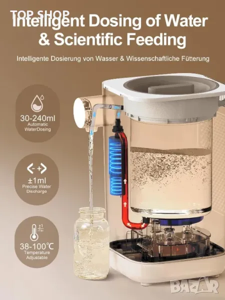 ОПИСАНИЕ - Интелигентният бойлер Instant Warmer незабавно подготвя топла вода за бебешкото шише. Загрява вода за бебешки шишета/топли напитки до желаната температура (38°C до 100°C) и поддържа тази температура 24 часа. Поддържа правилната температура по всяко време на деня и нощта, така че да можете да подготвите бебешко шише по всяко време.