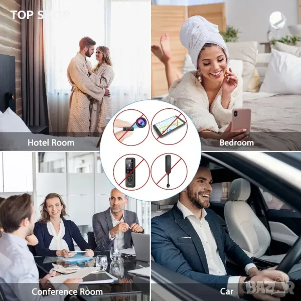 Този антишпионски детектор може да се използва широко в ежедневието и в бизнеса, включително, но не само: 1. В хотел, когато пътувате;