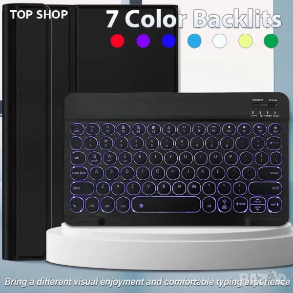 - Ярка клавиатура с подсветка: Издръжлива клавиатура в стил лаптоп с висок клас ABS материал. 7 цвята подсветка правят писането забавно и лесно на тъмно/нощ. и неговите клавиши в островен стил са тихи и удобни.