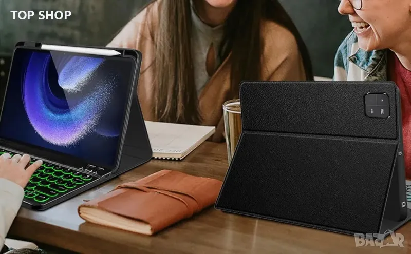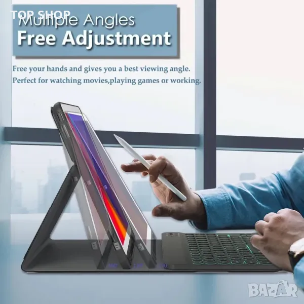 - Множество ъгли на гледане: С този стилен и елегантен дизайн той може да превърне таблета ви в лаптоп за по-малко от секунда. Екстериорът от първокласна кожа предпазва вашия таблет от случайно изпускане и удари.