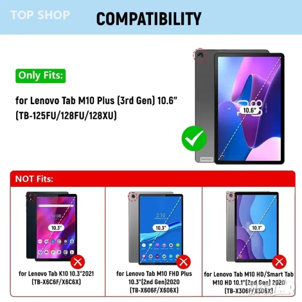 Съвместими устройства: за Lenovo Tab M10 Plus 3-то поколение (TB-125FU/128FU/128XU) 10,6 инча