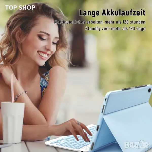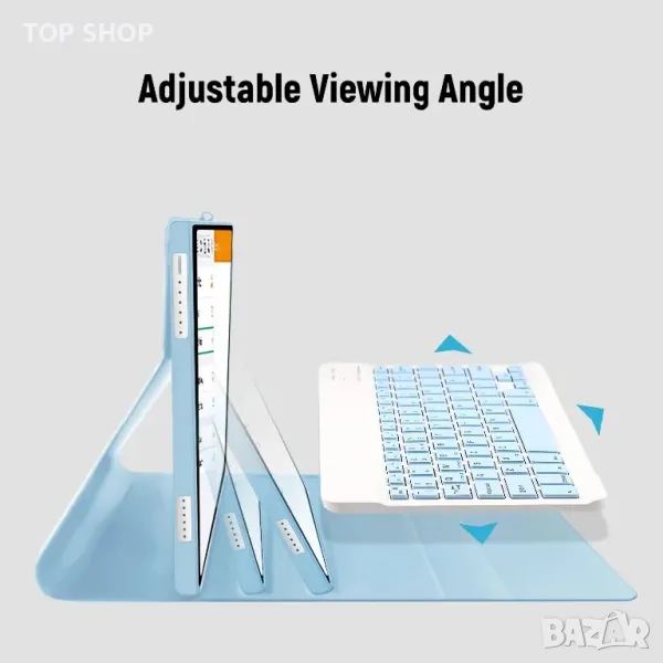 - МНОГО ЪГЪЛИ НА ГЛЕДАНЕ: С този стилен и елегантен дизайн той може да превърне вашия таблет в лаптоп за по-малко от секунда. Можете да превключите своя таблет на различни ъгли на гледане в пейзажен режим, за да осигурите най-удобната позиция за гледане. Перфектен за работа, писане или гледане на видеоклипове на работа, в училище, при пътуване и у дома. СПЕЦИФИКАЦИИ: