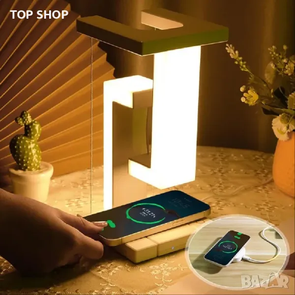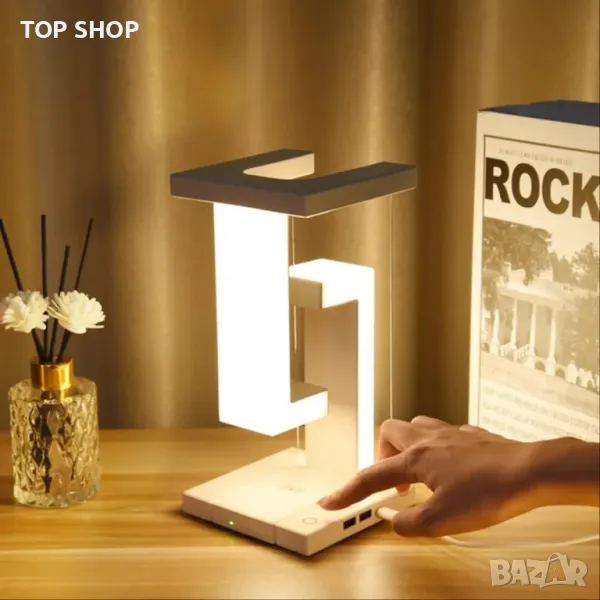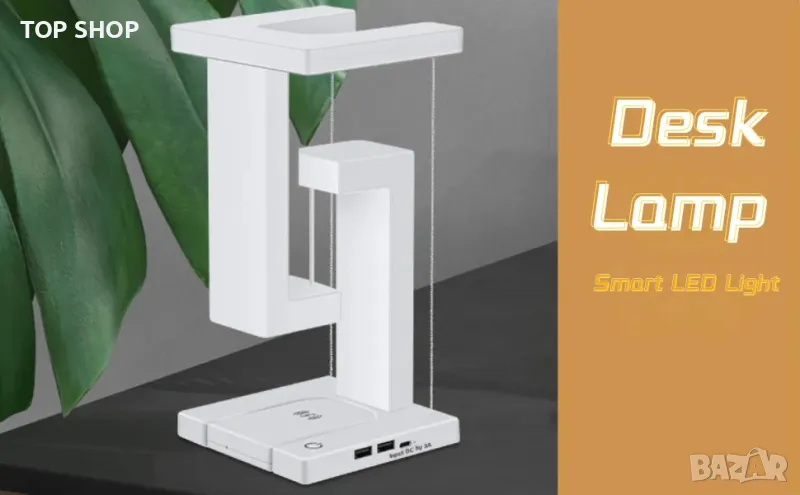 Смарт Настолна Левитираща LED лампа/Димируема/сензорно у-е/Безжично зареждане/2 USB порта
