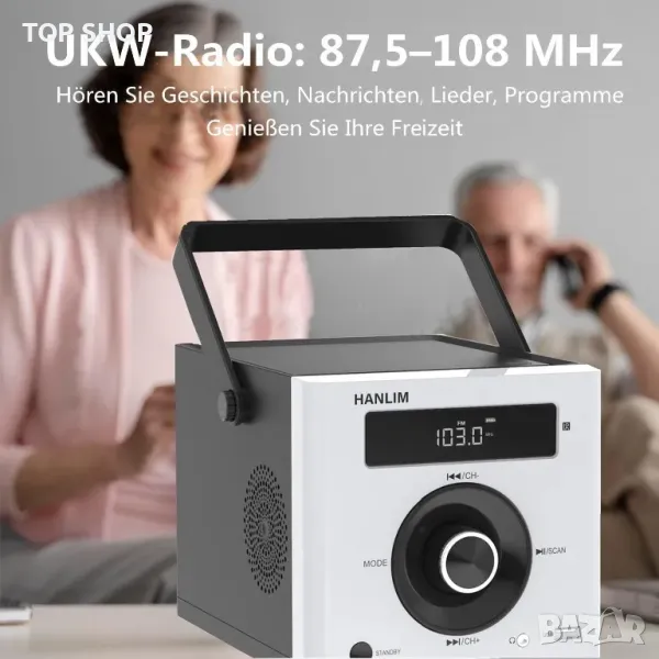 - Красив и семпъл дизайн, подходящ за всяка стая, като спалня, всекидневна и кухня и др. Дълга дръжка и вградена акумулаторна батерия, подходяща за използване на открито. Пакетът включва: CD плейър/захранващ кабел (1,2 м)/дистанционно управление/ръководство за потребителя. СПЕЦИФИКАЦИИ: