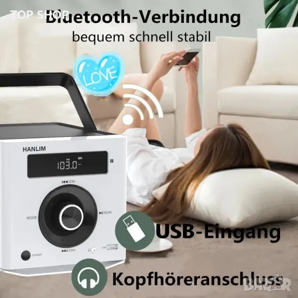 ОПИСАНИЕ - Многофункционален: ►1. CD за слушане: CD/CD-R/CD-RW/MP3 ►2 Слушайте FM радио: 87,5-108MHz, сканираните станции се съхраняват в последователност (до 20 станции) ►3. Свържете Bluetooth: Свържете вашето устройство (телефон, таблет, компютър и др.) към