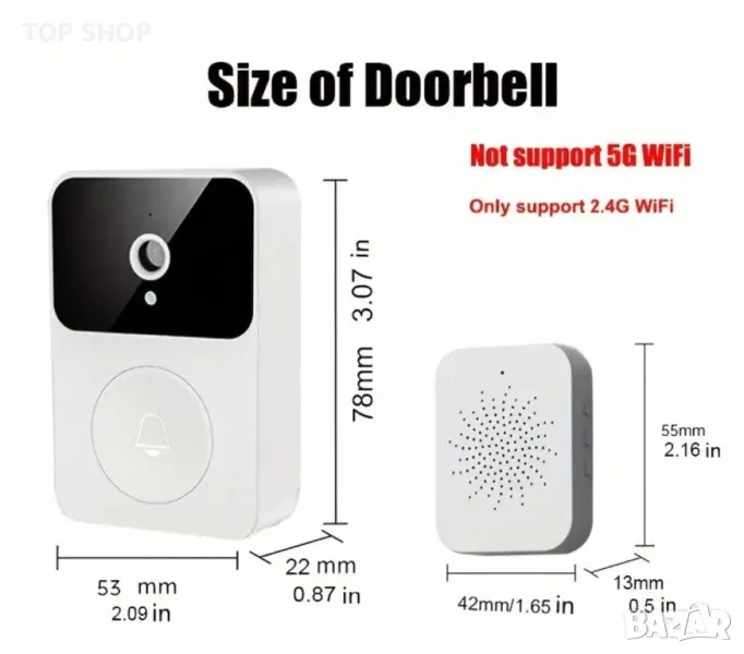 * Размери на звънеца с камера: 7.9x5.2x2.3cm