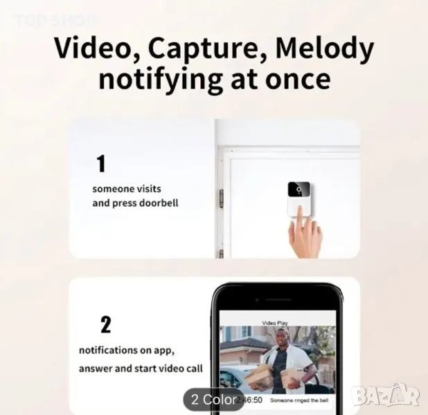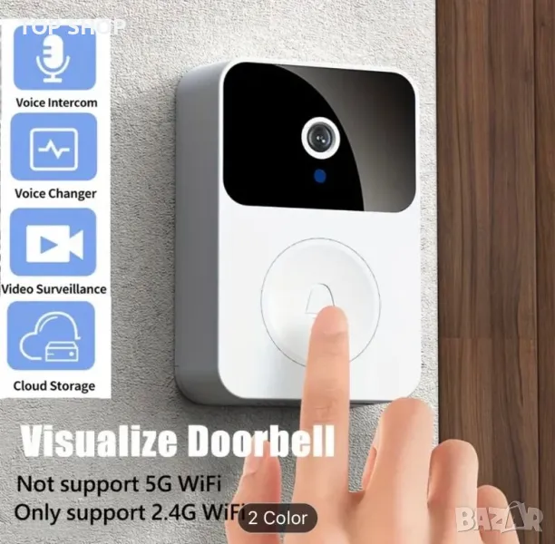 ОПИСАНИЕ Благодарение на безжичната Wi-Fi технология, интелигентният звънец позволява гледане от разстояние и разговори с хората пред входната врата. Вграденият сензор за движение ви позволява автоматично да записвате видео, което след това може да възпроизведете на екрана на вашия смартфон. 1. Поддържа видео разговори: X9 Wifi видео звънец поддържа видео разговори и може лесно да отговаря на посетители. В същото време може да заснема снимки и да ги съхранява за защита на сигурността.